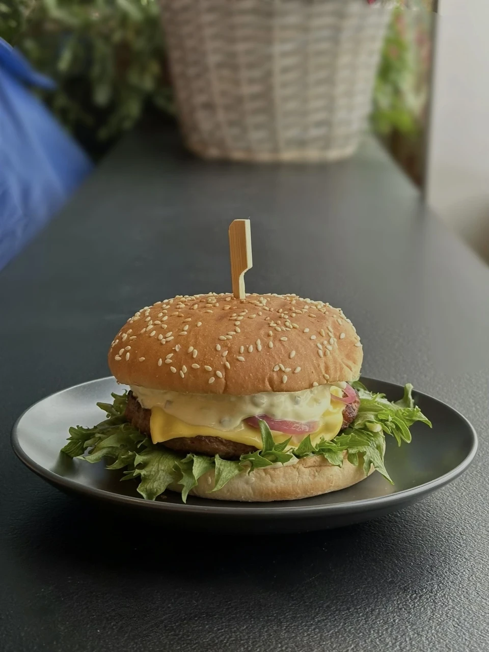 Koostisosad: Grillitud sai, frillis, kurgi-sinepi kaste, kanafilee, riivsai, muna, tomat, marineeritud kurk, marineeritud sibul, juust.