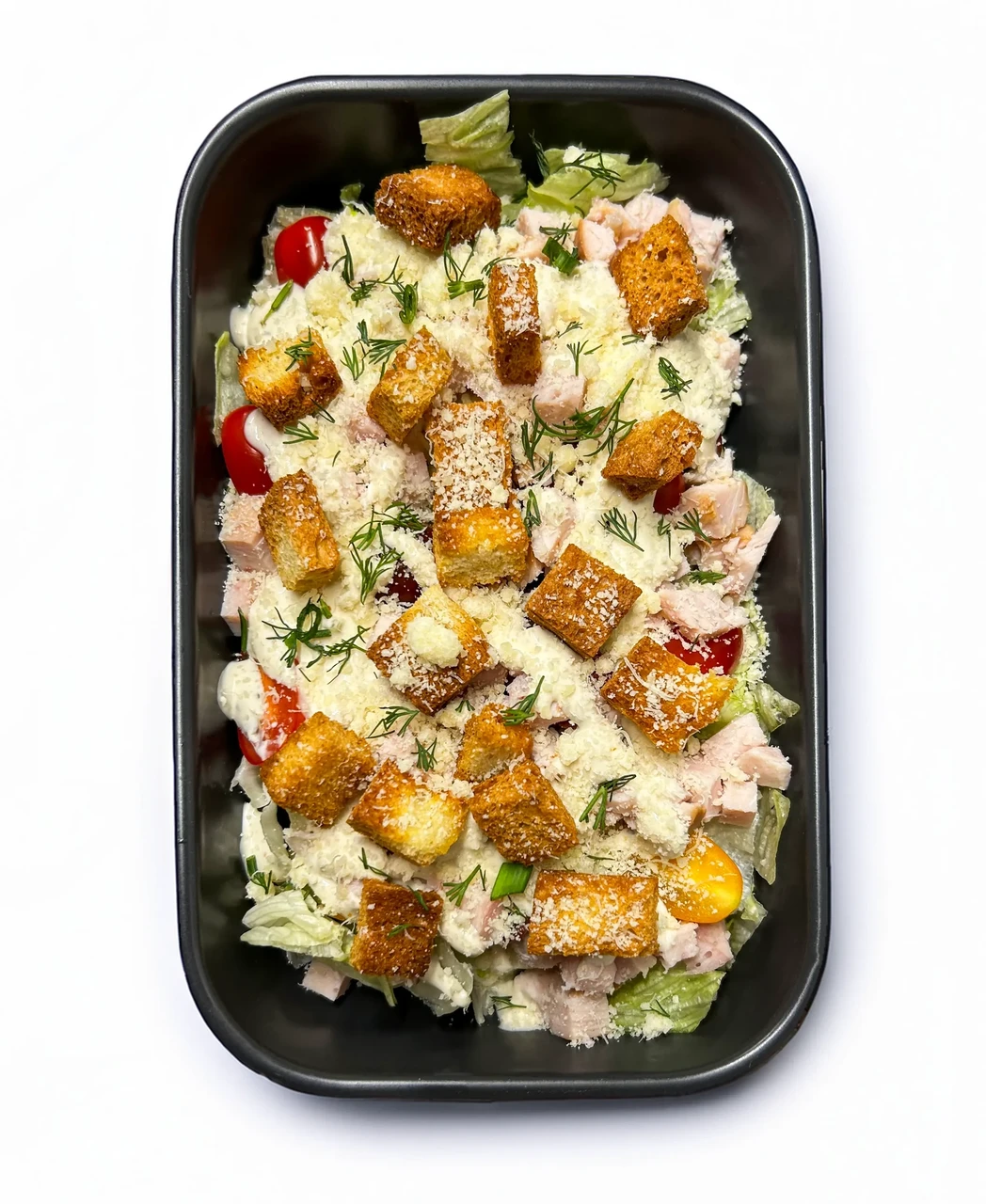 Koostiosad: jääsalat, kirrstomatid, Caesari kaste, krutoonid, parmesani juust , suitsukana.