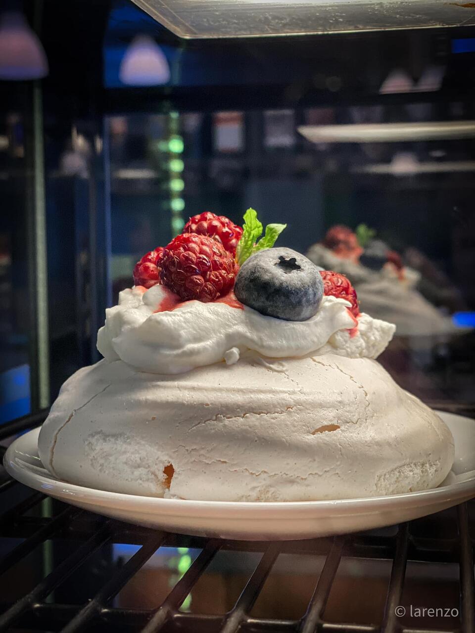 Beseepõhjal õhuline vahukoorekook värskete marjadega.