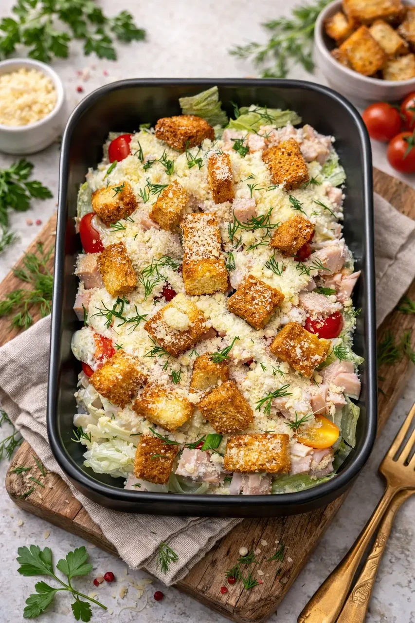 Koostiosad: jääsalat, kirrstomatid, Caesari kaste, krutoonid, parmesani juust , suitsukana.