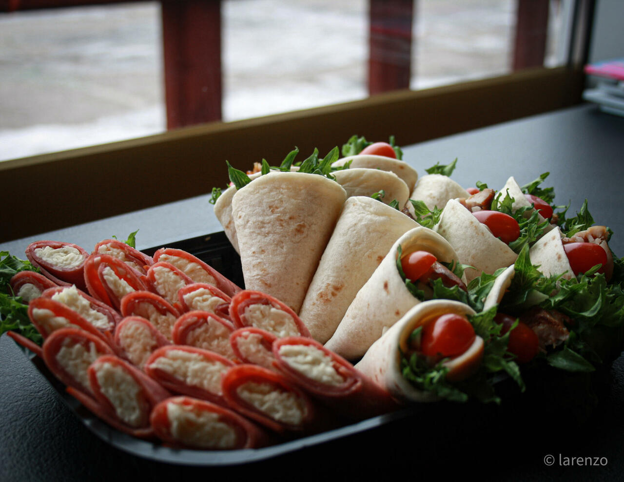 Väikesed suupiste wrapid, sisaldavad praekana, sulatatud juustu ja aedvilju.